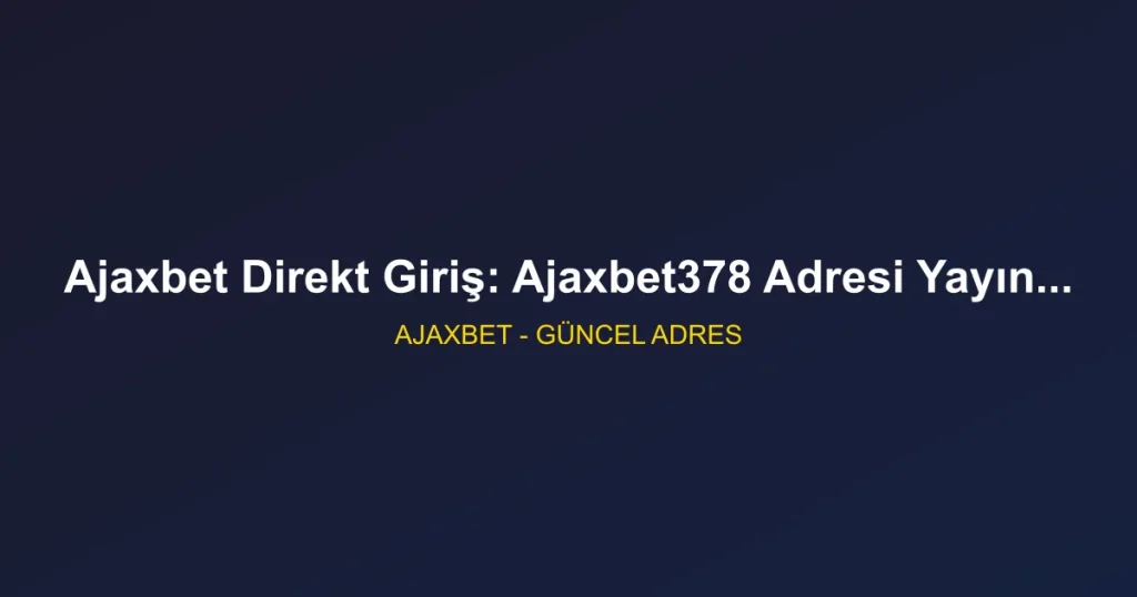 Ajaxbet Yeni Adresi: Ajaxbet382
